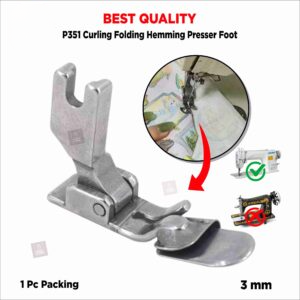 P351 3mm Curling Presser Foot – Industrial Stainless Steel Hemming Foot for Flat Sewing Machines Sewing Accessories, Sewing Machine Foot